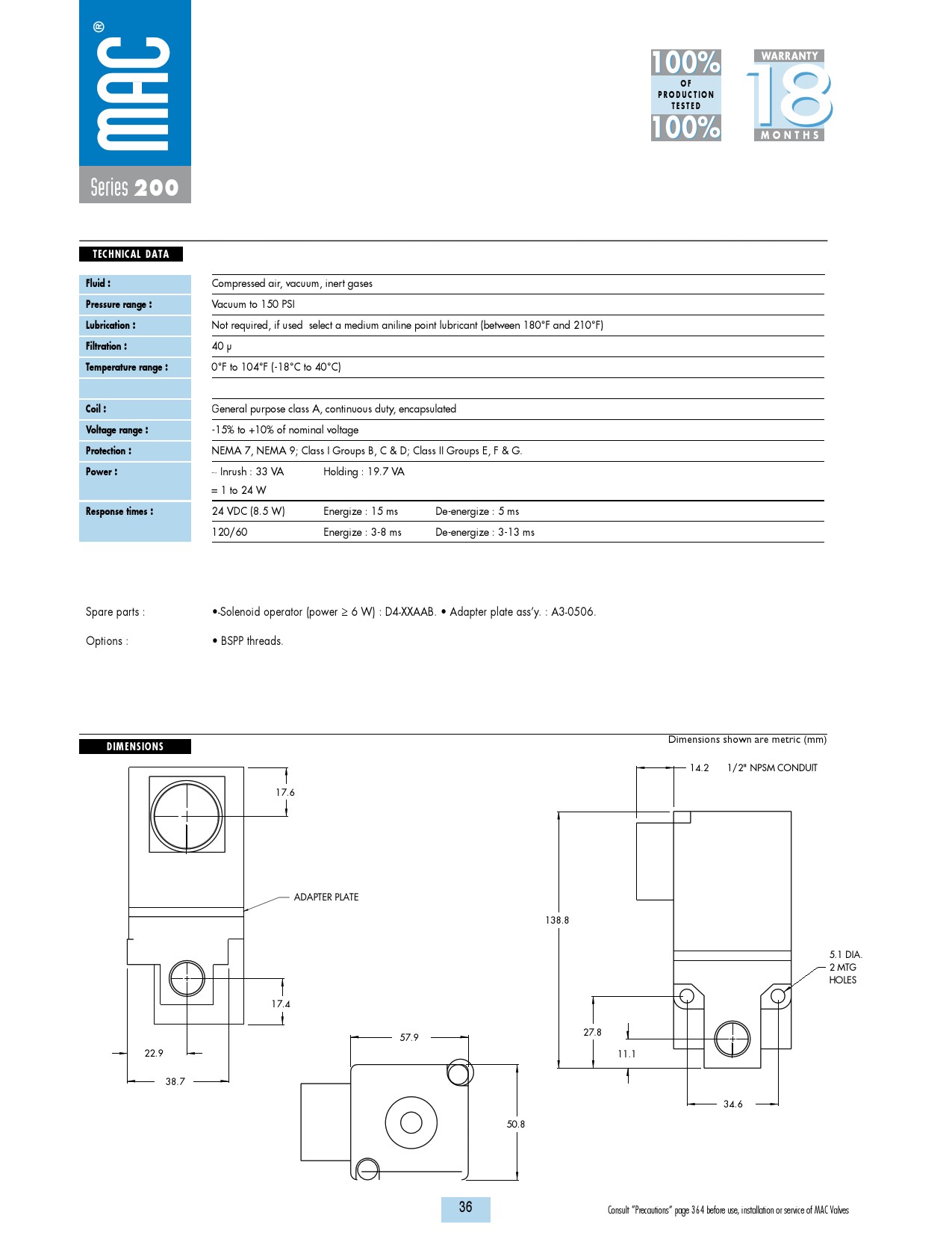 美國MAC超高速電磁閥 / 225B防暴型單獨式